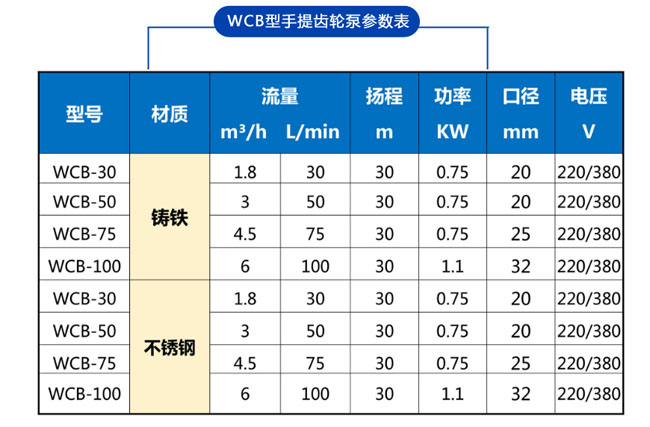 WCB便攜式手提油泵屬于低壓力微型手提式節(jié)能輸油泵,可使用220V電壓啟動,體積小,重量輕,并配有手柄方便用戶提在手中移動。WCB便攜式油泵保養(yǎng)方便,性能可靠,使用壽命長,外觀簡潔 ,結(jié)構 合理,采用國際標準 ,可輸送液體不可含固體顆粒,輸送溫度不高于70℃ 。 適用于無動力電源的出售單位油桶軸油,也適用于煉油廠、電廠、電站、變電所(室)及油庫輸油。稀油潤滑系統(tǒng)的稀油轉(zhuǎn)運。